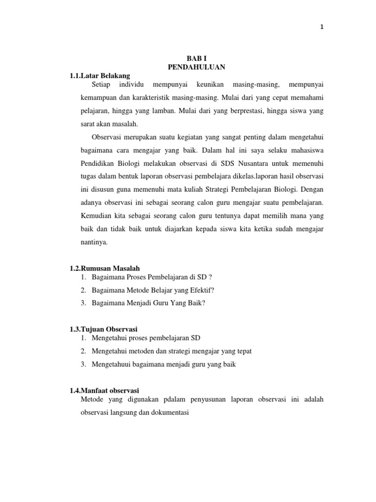 DOC) CONTOH LAPORAN OBSERVASI JADI BAB 1 PENDAHULUAN | Renaldo Oktoberi - Academia.edu