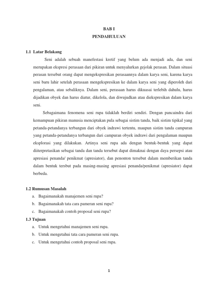 DOC) CONTOH PROPOSAL KEGIATAN PAMERAN SENI RUPA DI SEKOLAH.docx | Zakaria Ahmad - Academia.edu