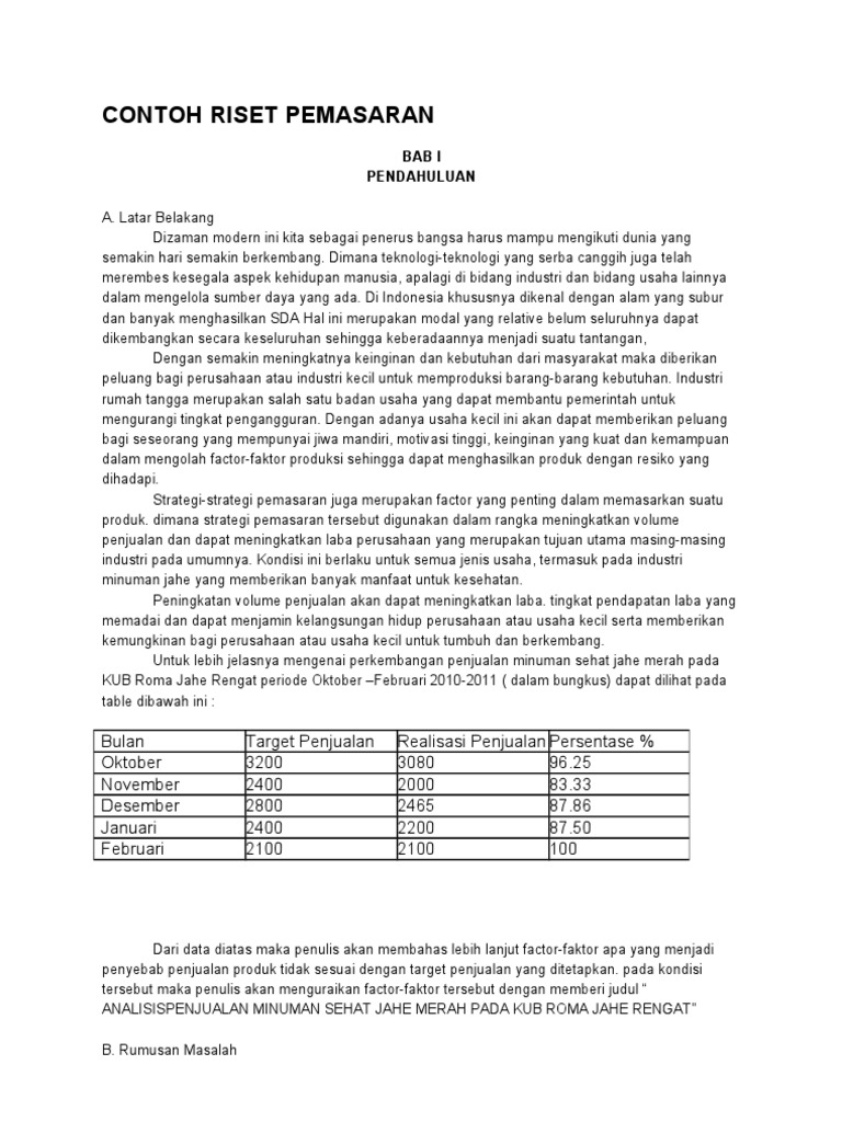 DOC) CONTOH RISET PEMASARAN | SITI AMINAH - Academia.edu