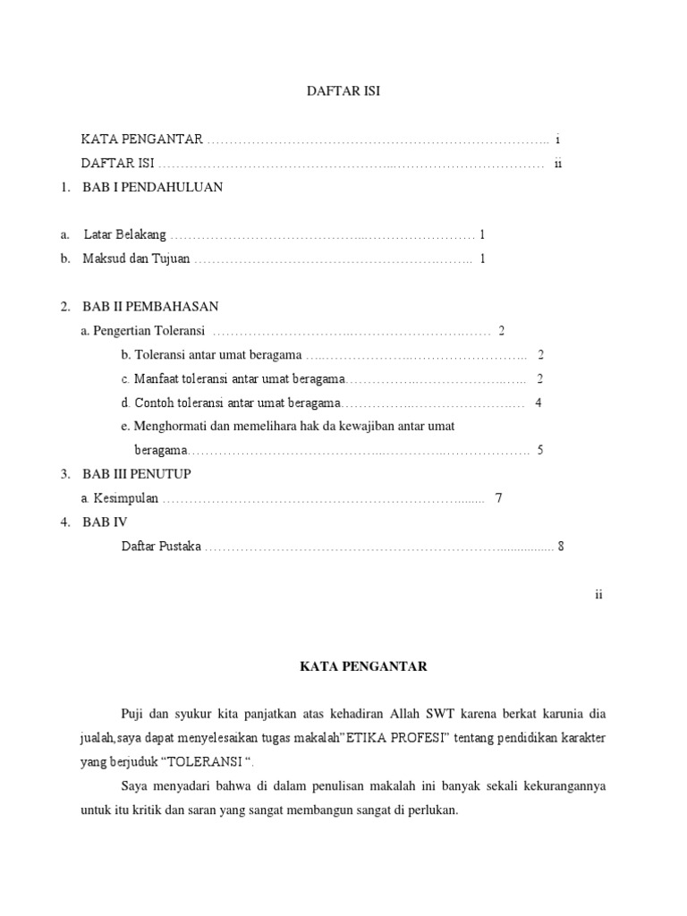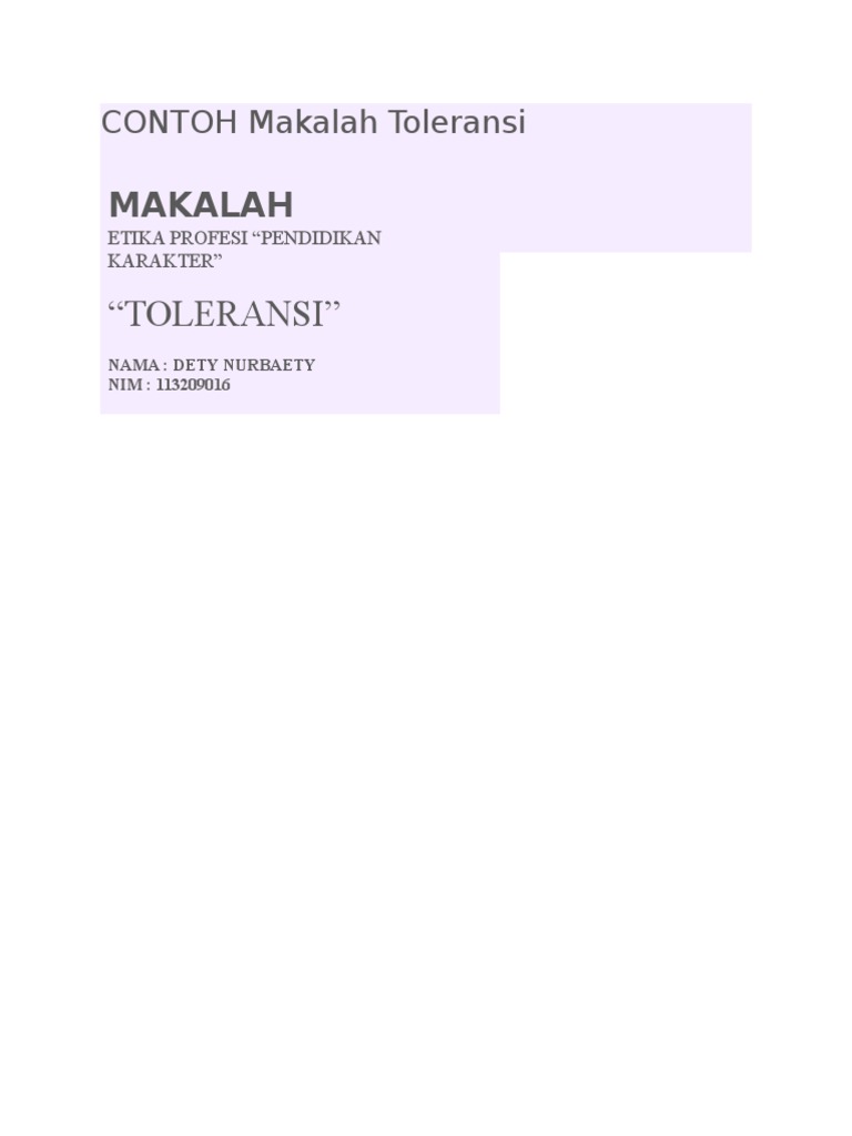 Contoh Makalah Toleransi