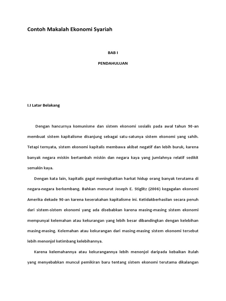 Contoh Makalah Ekonomi Syariah: Bab I Pendahuluan