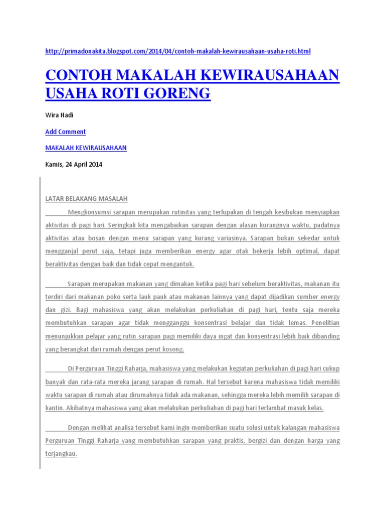 DOC) Contoh proposal kewiurausahaan makanan roti goreng.doc | Faisal Saifudin - Academia.edu