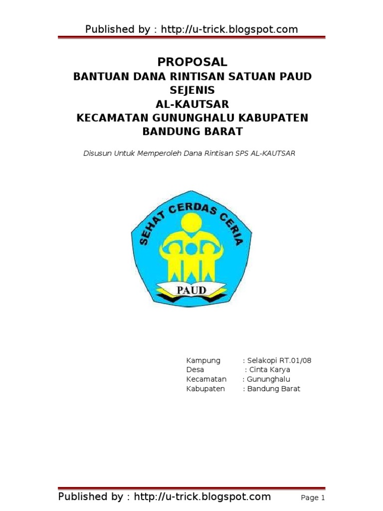 PROPOSAL PERMOHONAN BANTUAN OPERASIONAL PAUD TAHUN 2019 DI AJUKAN OLEH : : RT 009 / RW 002. : Desa / Kel. Bojongkoneng. : Kecamatan Gunungkencana - PDF Free Download