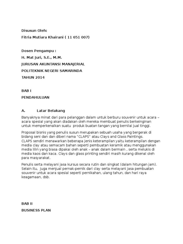 DOC) Contoh Business Plan Sederhana | Hotmian Situmeang - Academia.edu