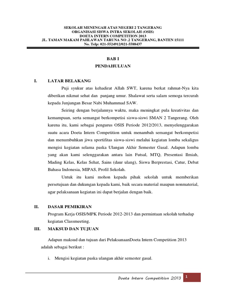 DOC) Tugas BI Contoh Proposal Oleh : Leony , 2-1/14 PROPOSAL KEGIATAN CLASS MEETING | Leony Yang - Academia.edu