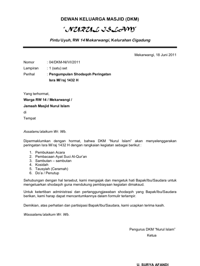 Contoh Surat Permohonan Dana Isra Miraj - Kumpulan Surat Penting