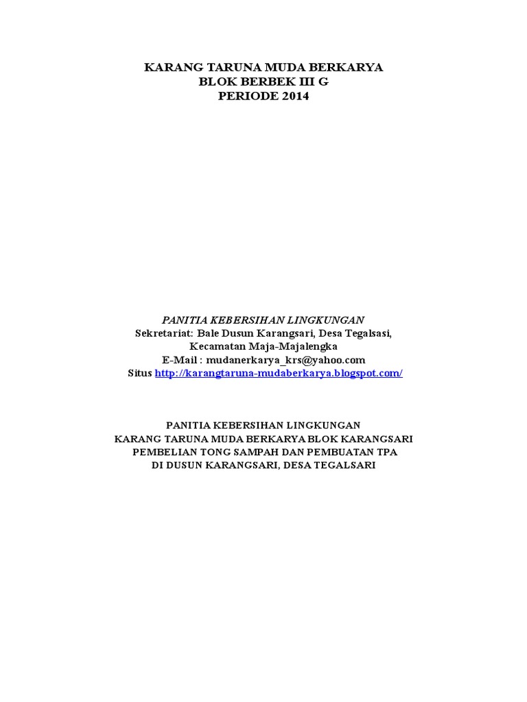 DOC) PROPOSAL KEBERSIHAN LINGKUNGAN | riyan supridi - Academia.edu