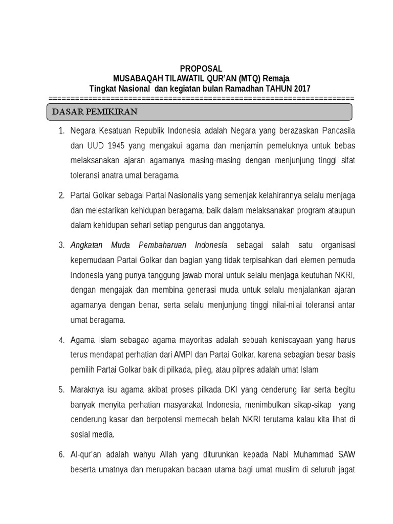Contoh Proposal Kegiatan Mtq Tingkat Kecamatan - Berbagi Contoh Proposal