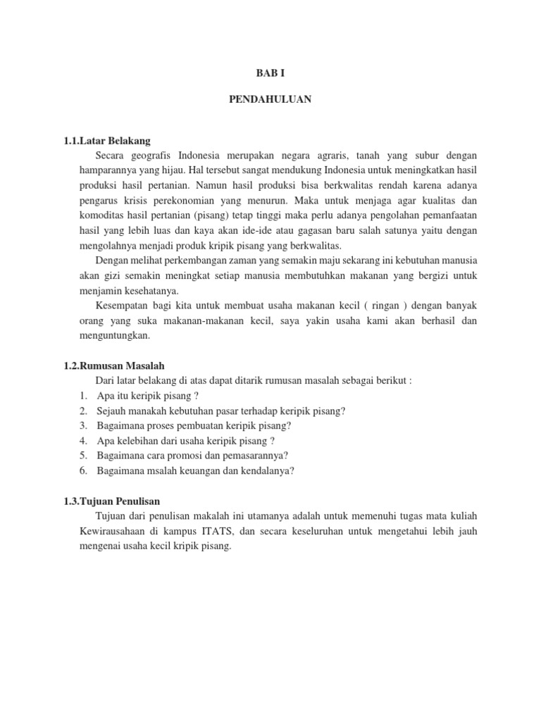 DOC) PROPOSAL KRIPIK PISANG | indah rahmi - Academia.edu
