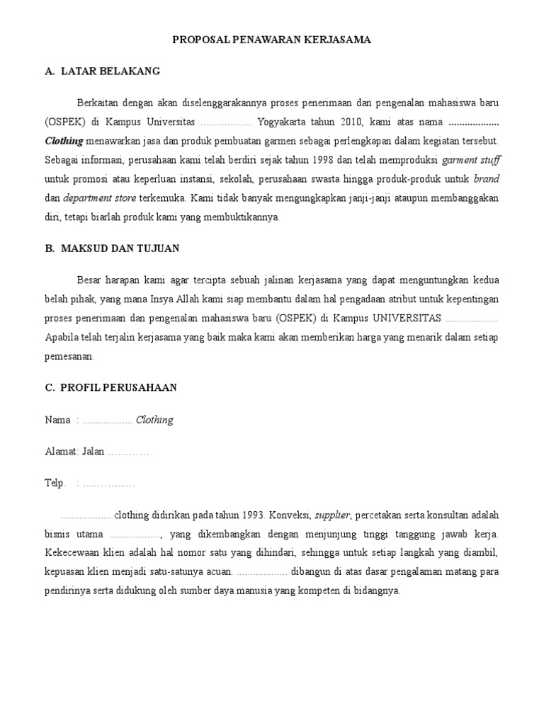 DOC) PROPOSAL PENAWARAN KERJA SAMA | matius ginting - Academia.edu