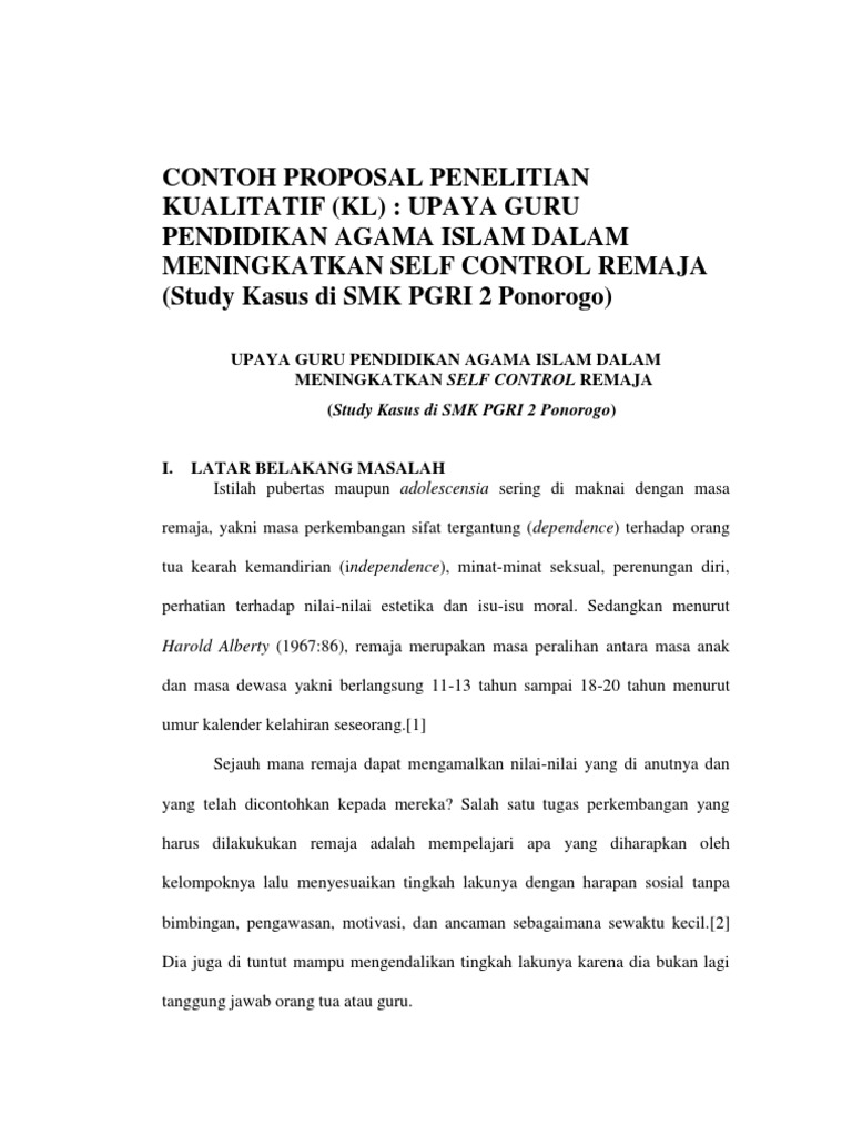 contoh proposal penelitian kualitatif (kl) : upaya guru pendidikan agama islam dalam meningkatkan self control remaja