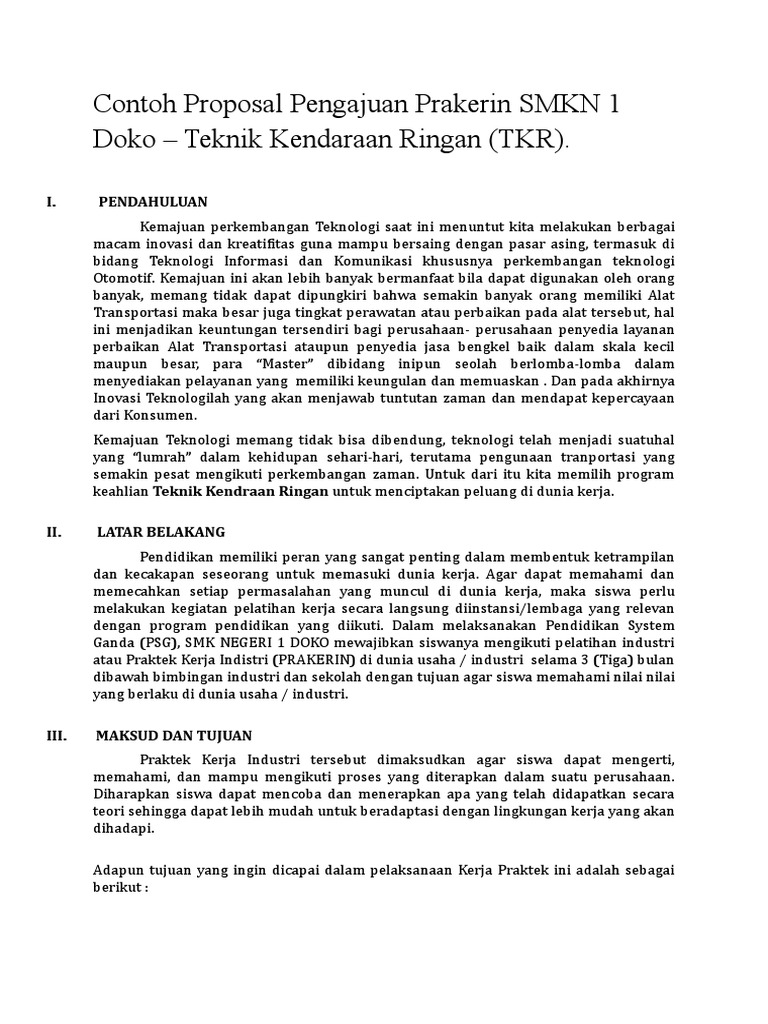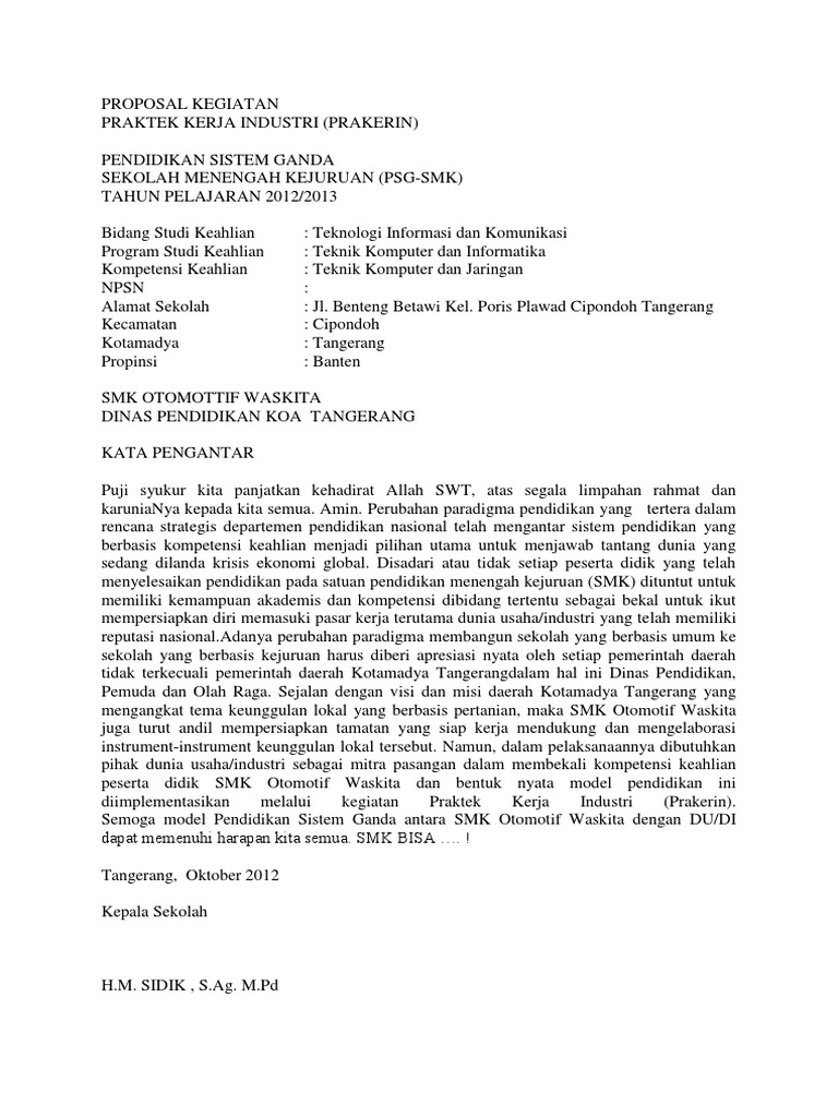 PROPOSAL PELAKSANAAN PRAKTEK KERJA INDUSTRI (PRAKERIN) TAHAP I SEKOLAH MENENGAH KEJURUAN | Asep Yudi - Academia.edu