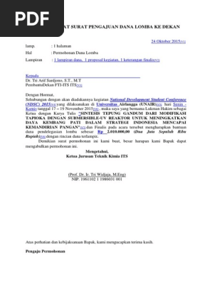 Contoh Format Surat Pengajuan Dana Lomba Ke Dekan Fakultas