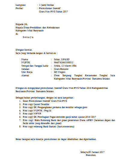 Surat Permohonan Insentif Guru Ngaji | Guru Paud