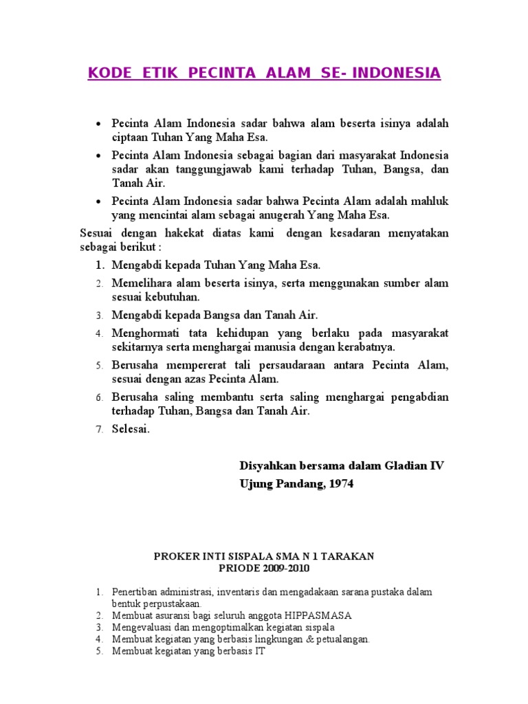 Kode Etik Pecinta Alam Sispala | Ilmu Pengetahuan 5