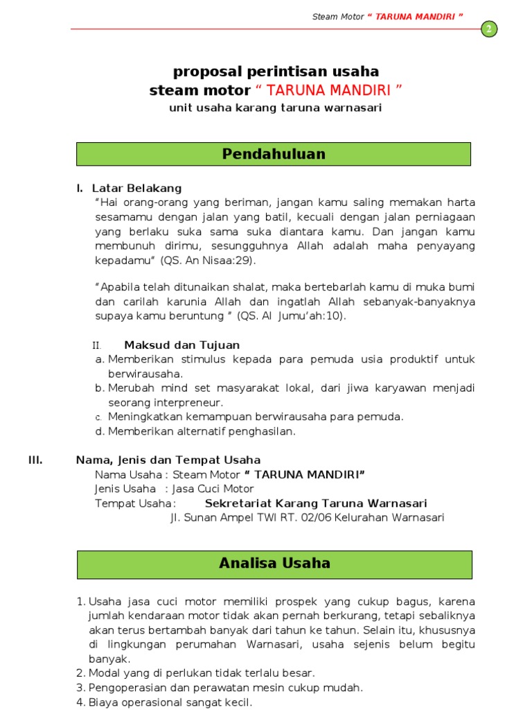 DOC) PROPOSAL USAHA CUCI MOTOR SALJU | fickykurniawan fickykurniawan - Academia.edu