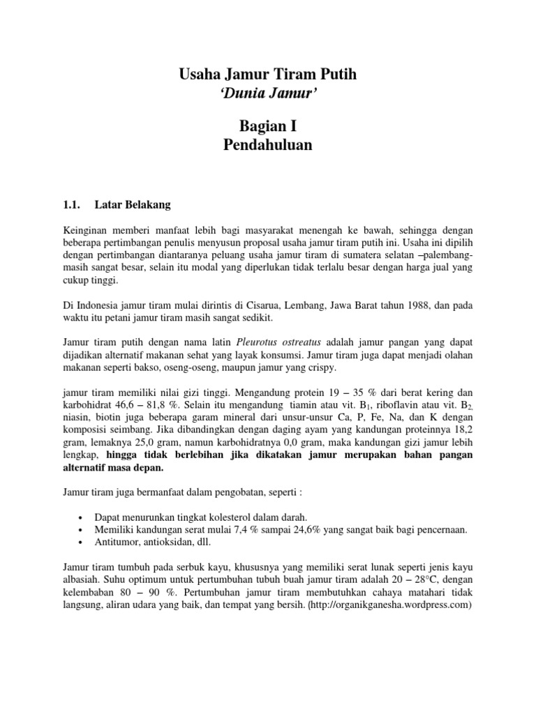 DOC) Proposal Budidaya Jamur Di Bantaeng | Fuad Lukman - Academia.edu