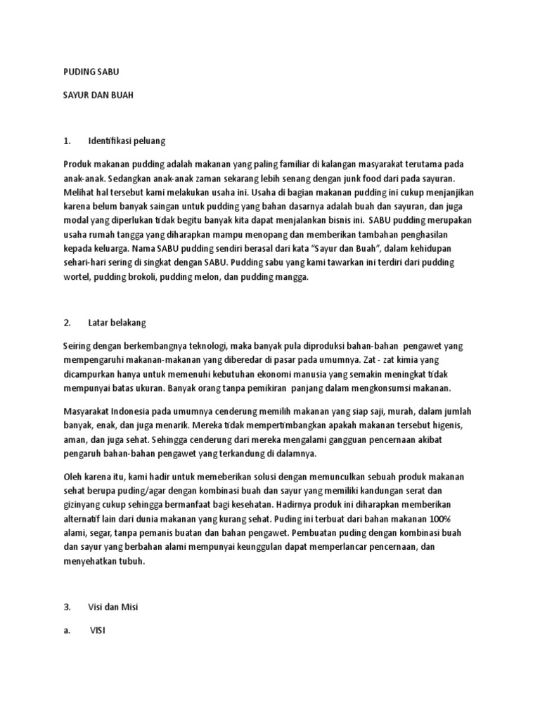 DOC) BISNIS PLAN USAHA PUDING | Putu Suardiana Utama - Academia.edu