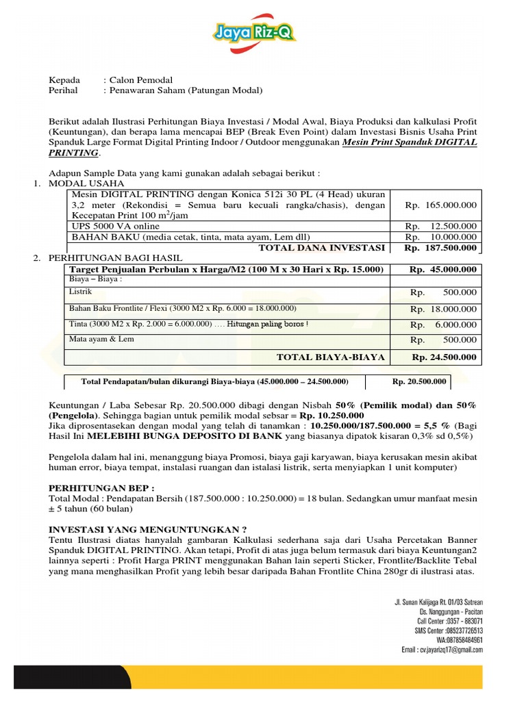 DOC) Contoh Proposal Usaha Digital Printing | andri setiadi - Academia.edu