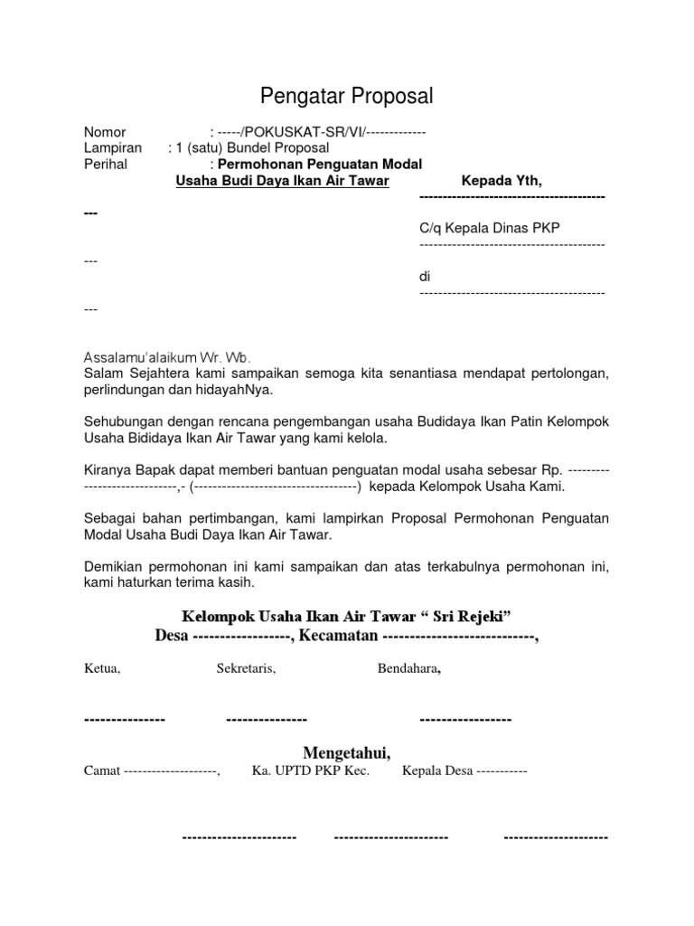 DOC) CONTOH PROPOSAL PERMINTAAN BIBIT IKAN KELOMPOK TANI KOLAM SEJAHTRA DESA TELUK AUR KECAMATAN RAMBAH SAMO KABUPATEN ROKAN HULU PROVINSI RIAU | Tak Namo - Academia.edu