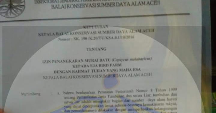 Syarat Penangkaran Burung Dilindungi Permen RI no 20 th 2018 - Tips dan Bisnis Seputar Burung