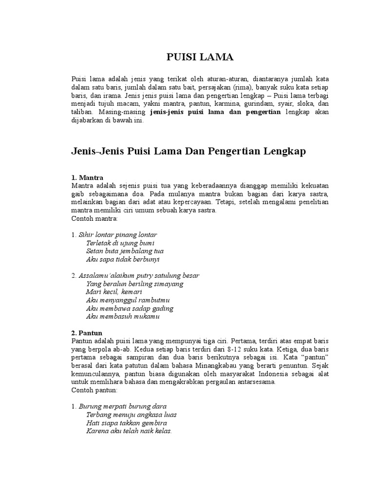 DOC) Puisi Lama dan Puisi Baru | Tuluz Hendra - Academia.edu