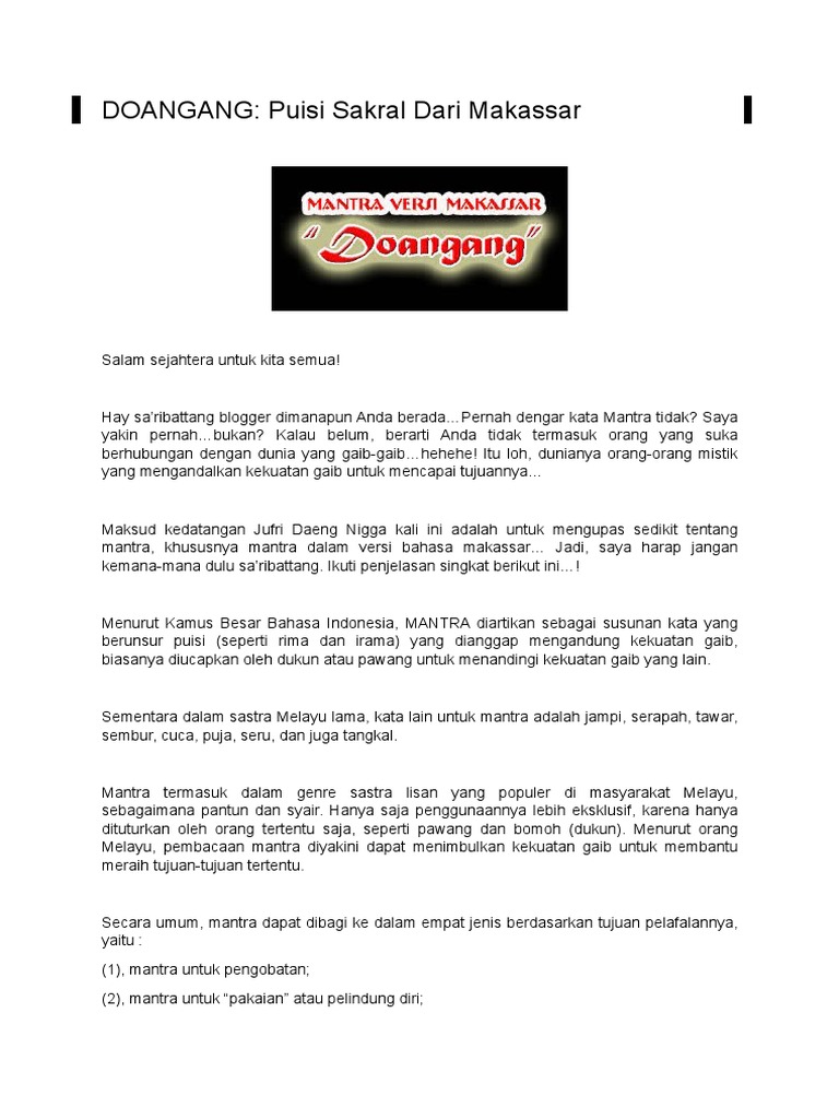 JEKA JOKA: DOANGANG: Puisi Sakral Dari Makassar