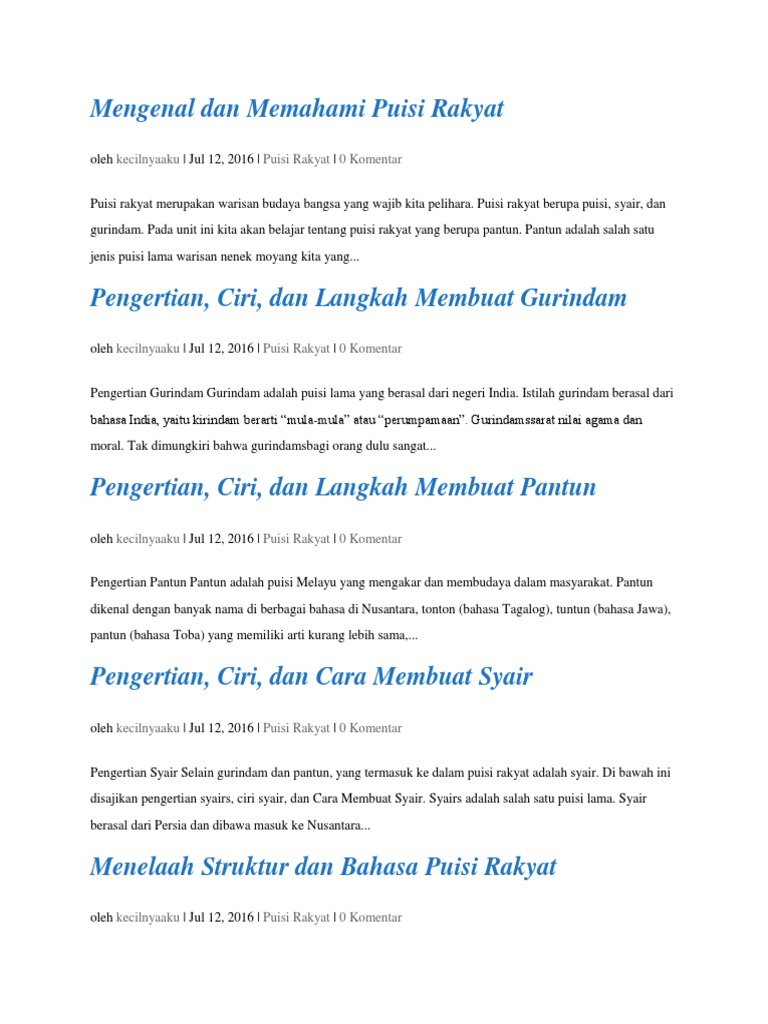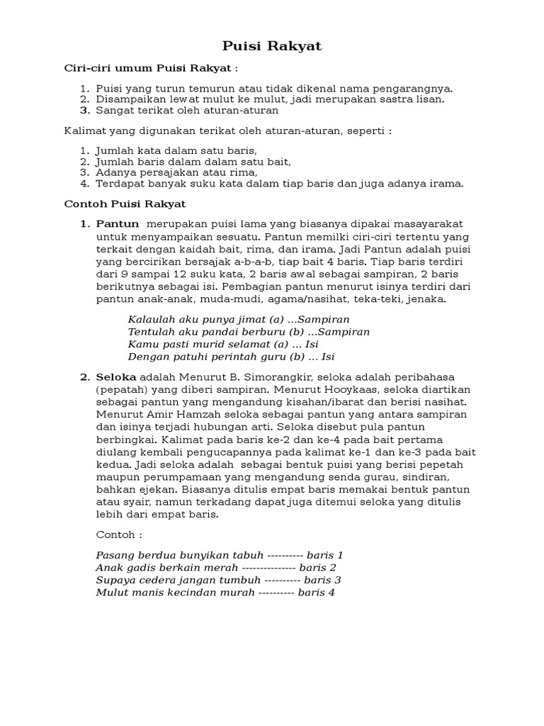 Puisi Rakyat Ciri Ciri Cara Menyimpulkan Dan Contoh – cute766