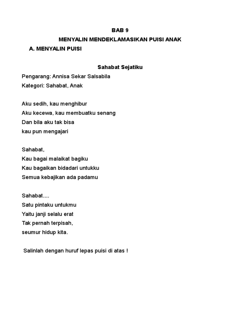 Puisi Sahabat Untuk Anak Sd Kelas 1 - KT Puisi