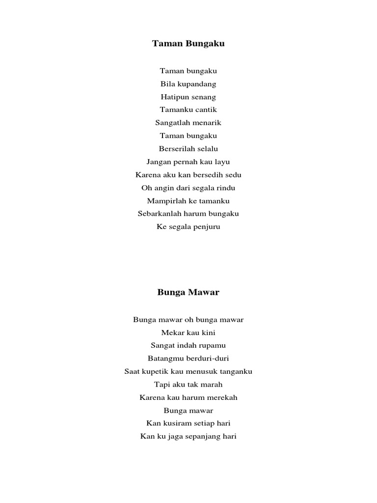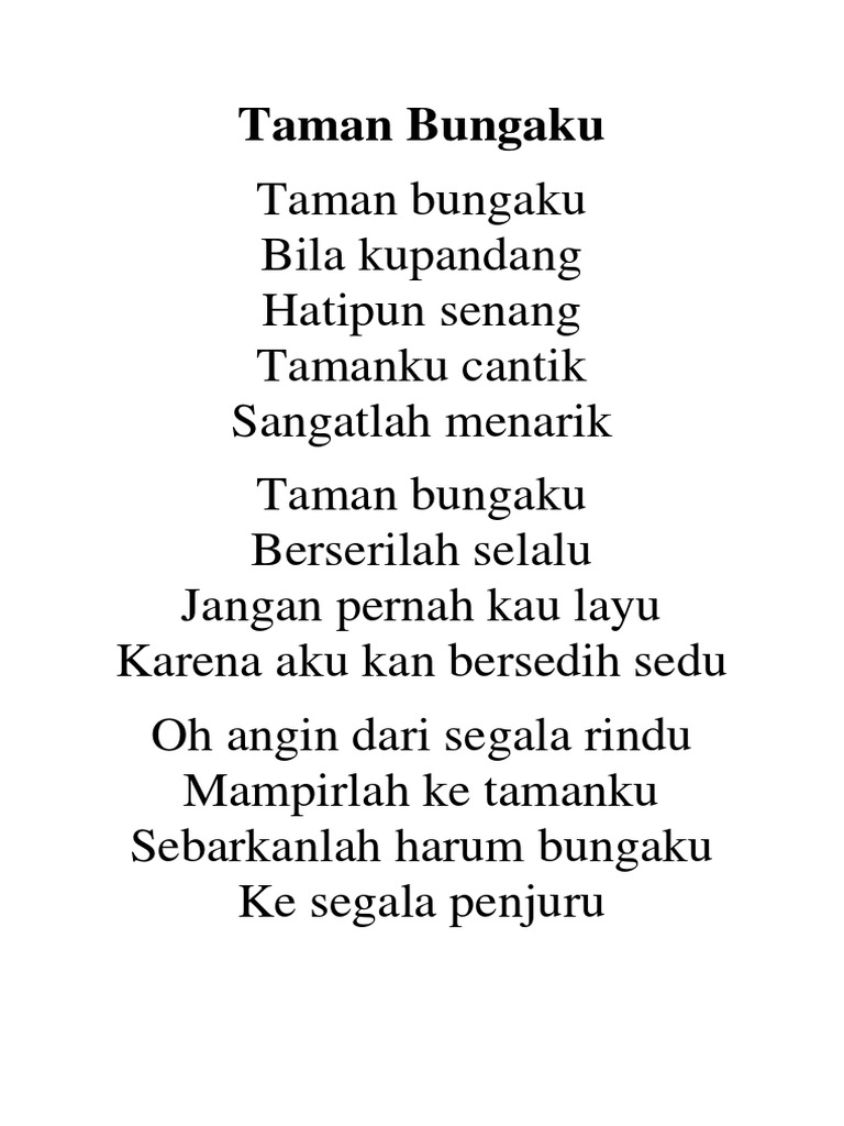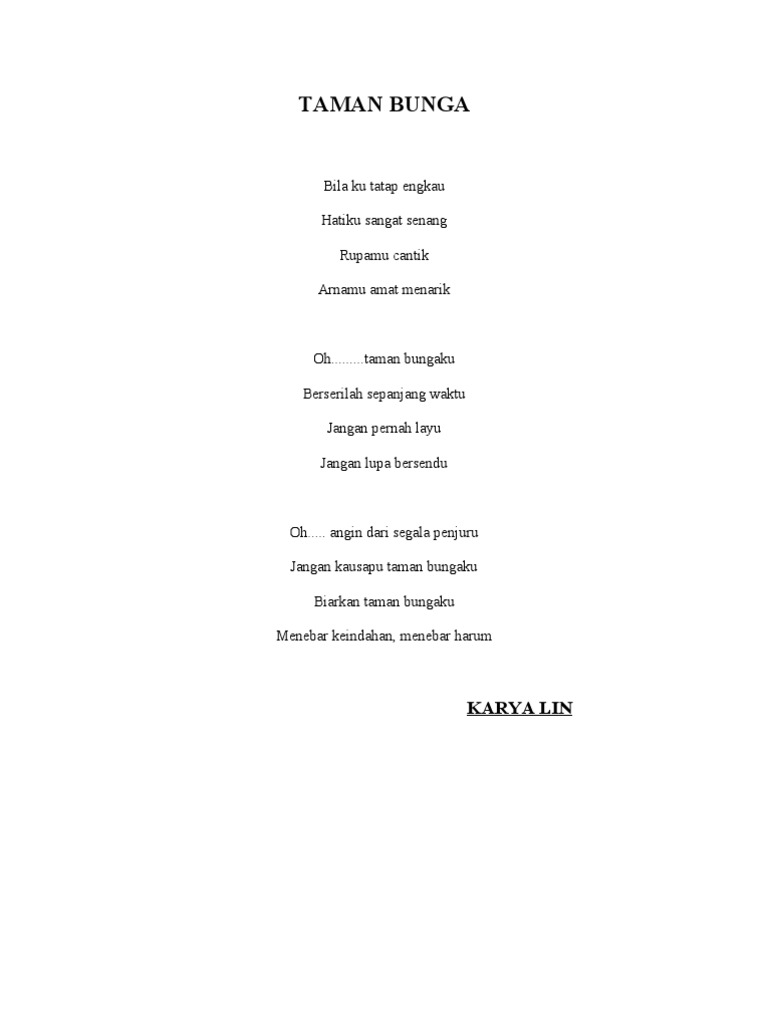 Sebutkan kata yagng baik dalam puisi taman bungaku - Brainly.co.id