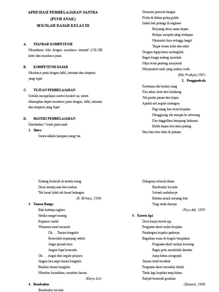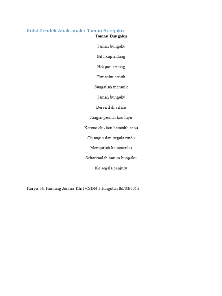 DOC) Kumpulan Puisi pendek Anak Sekolah Dasar | Panida Nurfazira - Academia.edu