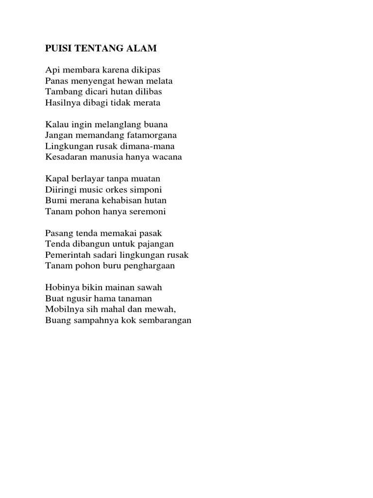 10 Contoh Puisi Alam Pilihan - Contoh Karya Sastra Puisi, Cerpen, Drama dan Lainnya