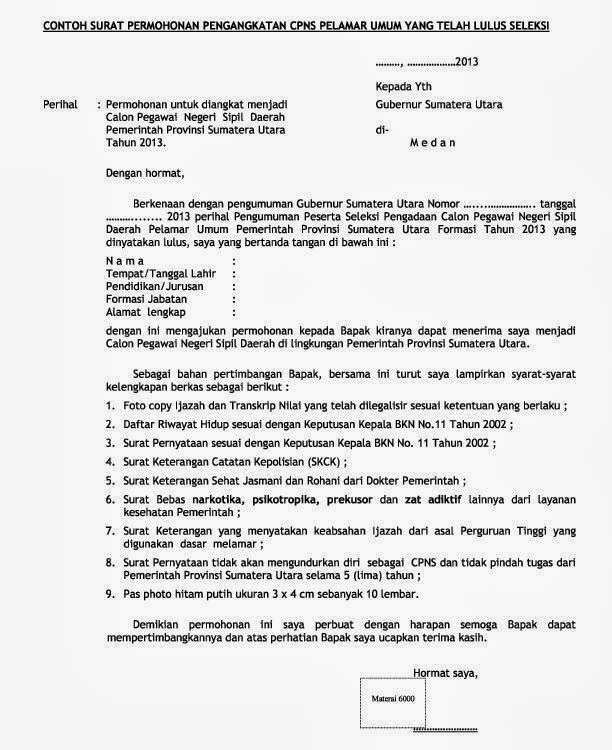 Kumpulan Contoh Surat Lamaran CPNS Pemprov Sumut | SelongJobs.com