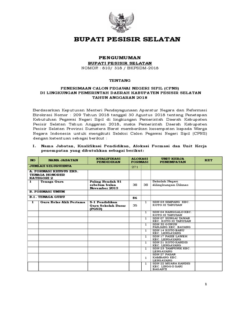 Hasil Seleksi Administrasi CPNS Provinsi Sumatera Utara 2018 - Informasi Pendidikan SD, SMP, Dan SMA/K