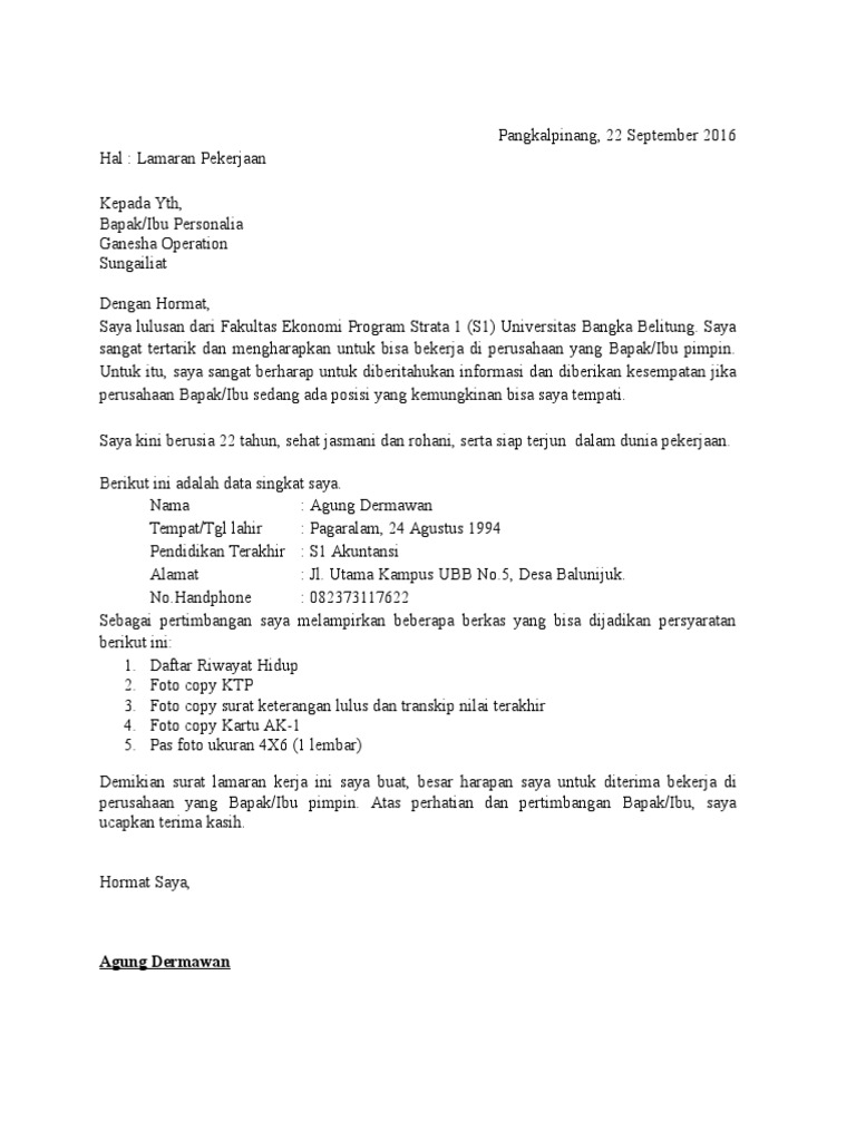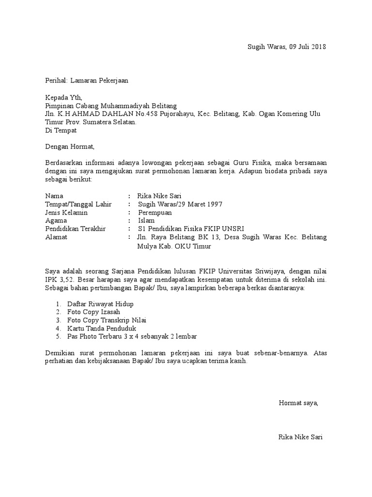 DOC) Contoh Surat Lamaran Pekerjaan yang Baik dan Benar | Kong Leo - Academia.edu