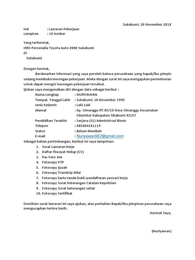 Contoh Surat Lamaran Kerja Auto 2000 - Disclosing The Mind