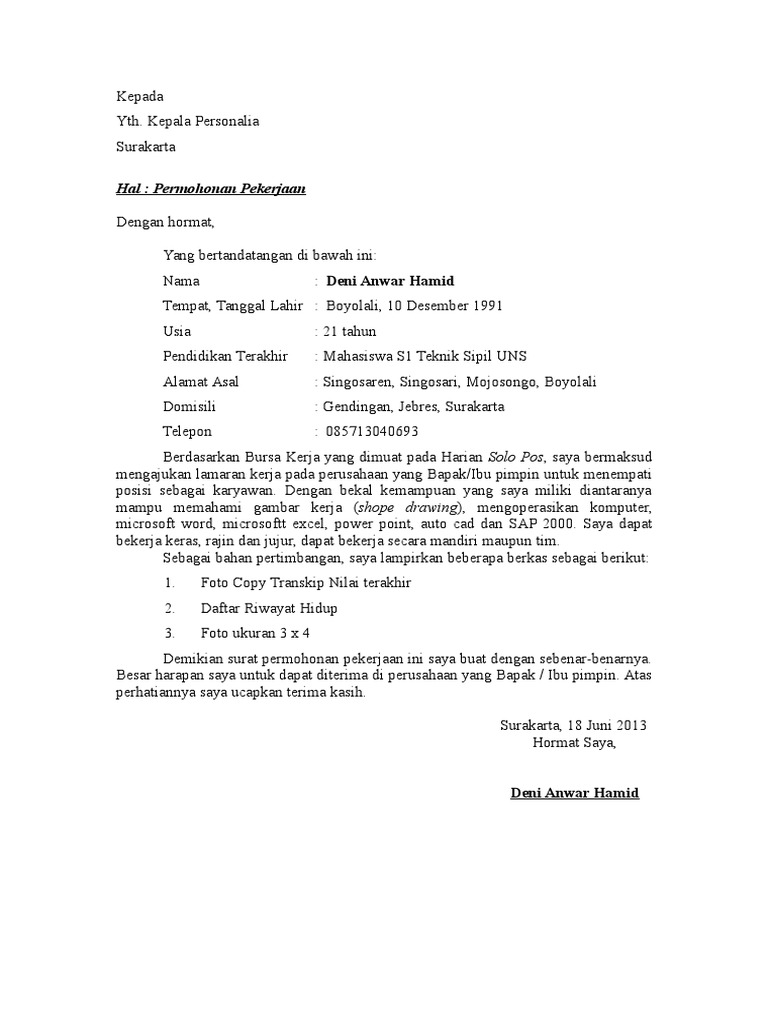 DOC) Perihal : Lamaran Pekerjaan | ilaa fadilaah - Academia.edu