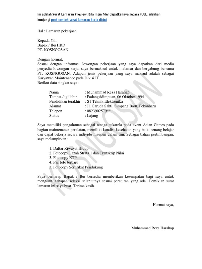 Contoh Surat Lamaran Pekerjaan Di Pt Hpm – Backup Gambar
