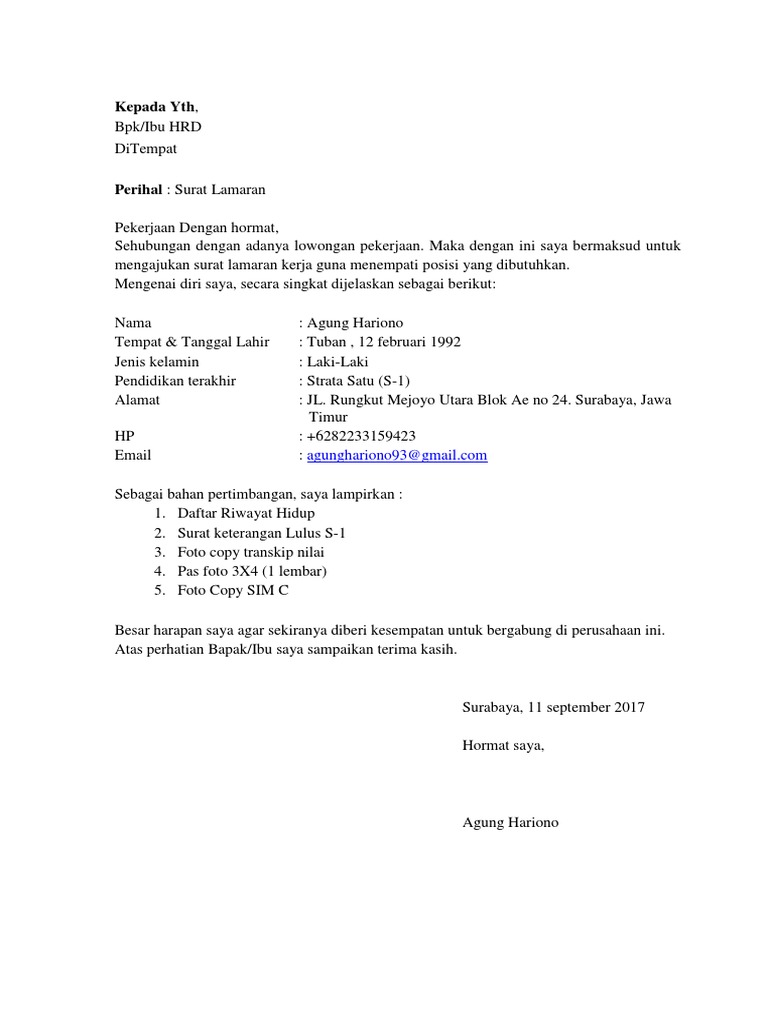 DOC) Contoh surat lamaran kerja | Dwi Rahmasari - Academia.edu