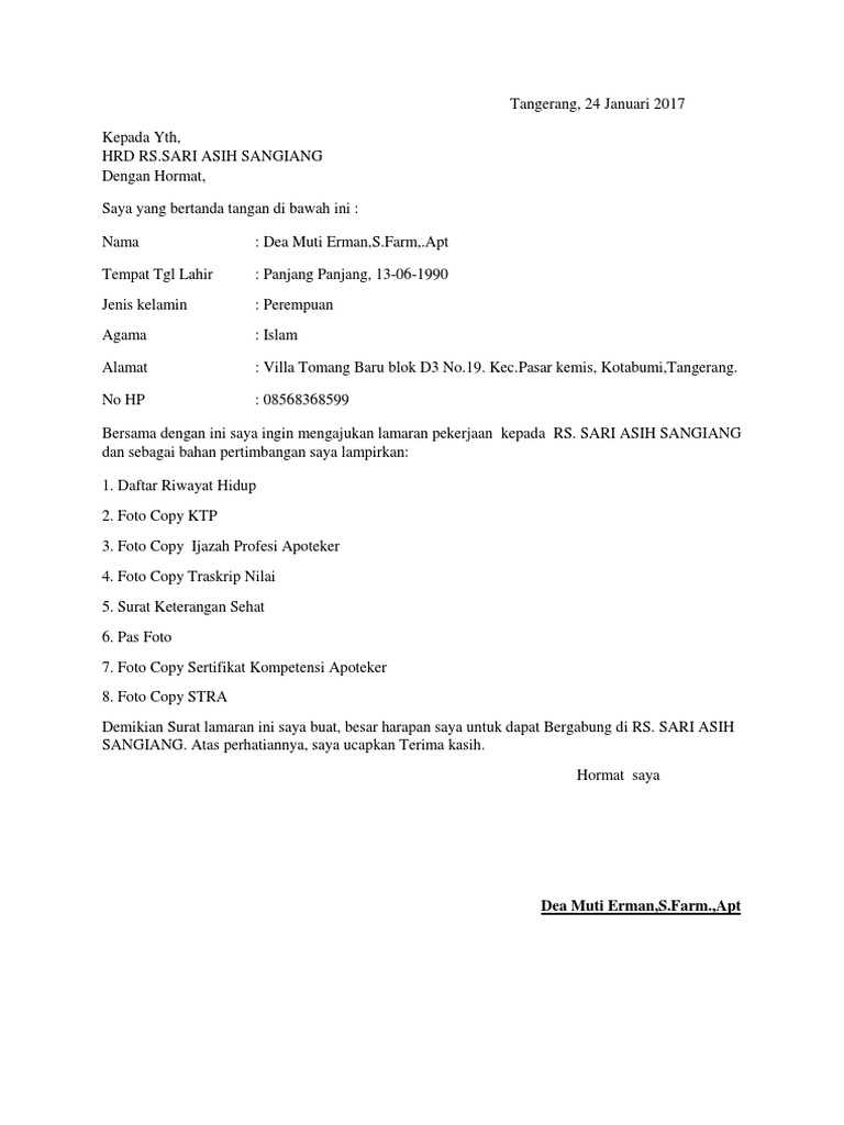 DOC) Contoh Surat Lamaran Kerja I | Dira Chaniagung - Academia.edu
