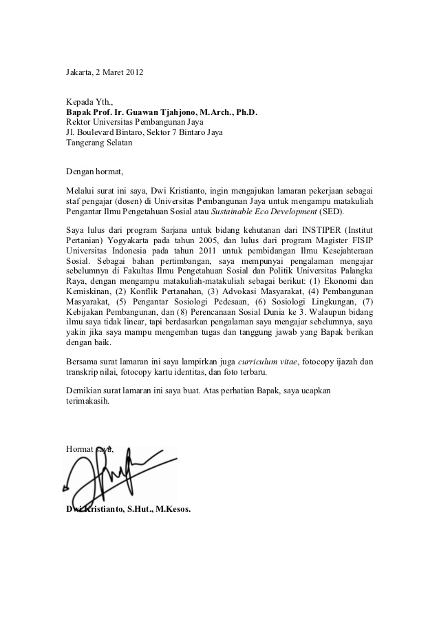 Contoh Surat Lamaran Kerja Sebagai Guru - Gawe CV