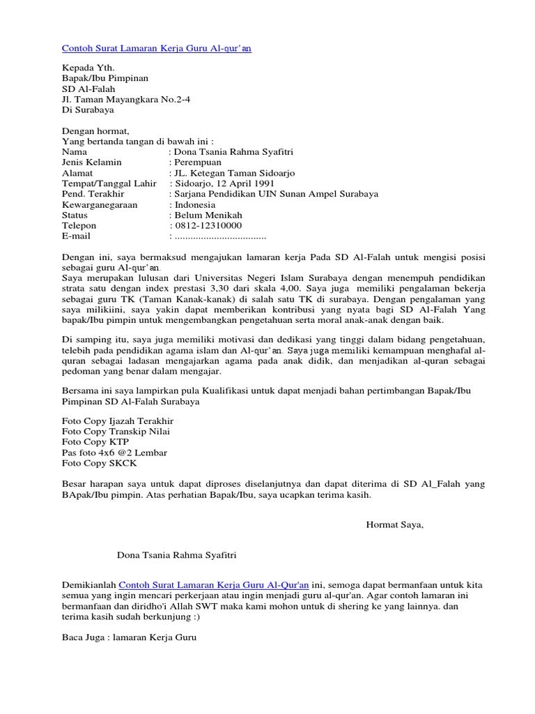 Contoh Surat Lamaran Kerja Guru Al.docx