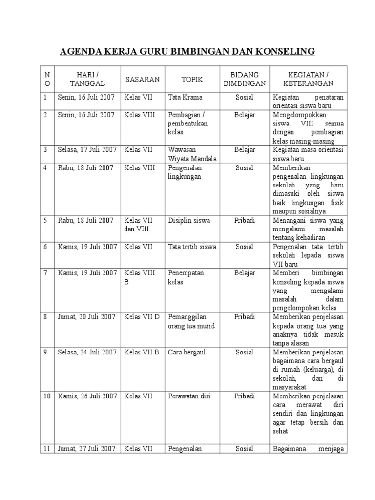 Agenda Kerja Guru Bimbingan Dan Konseling