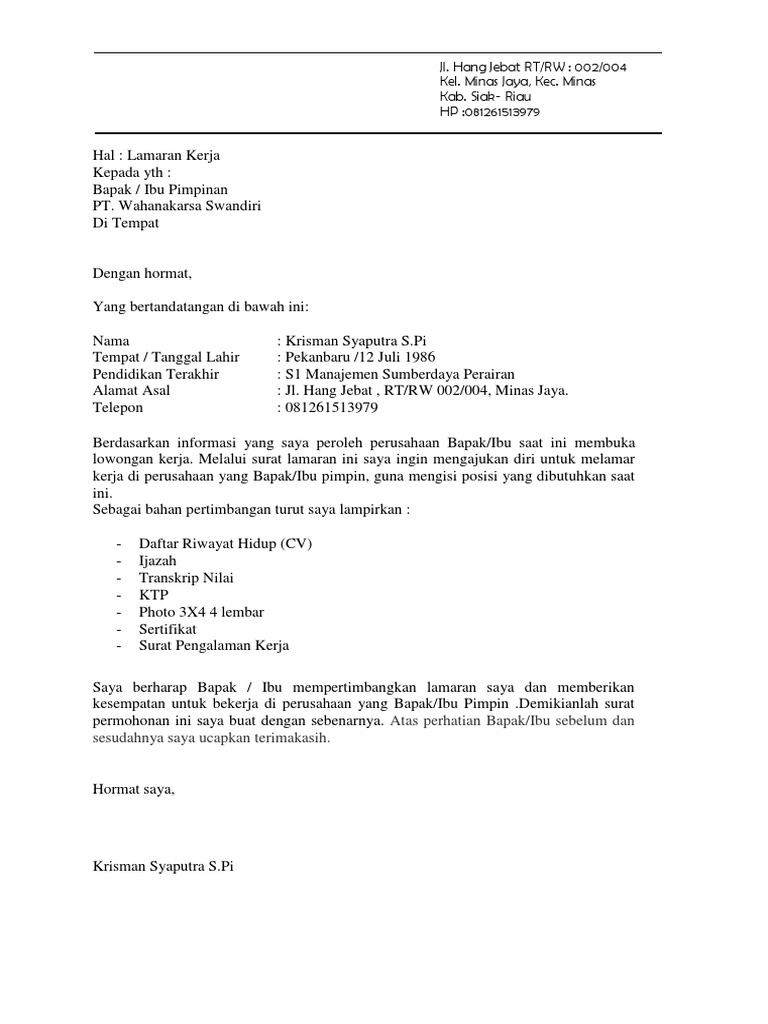 Contoh Surat Lamaran Kerja Dalam Job Fair | Surat, Pendidikan, Inspirasi