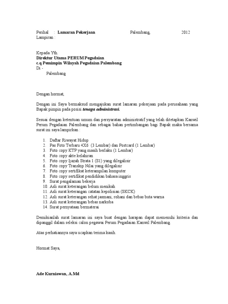 DOC) Surat Lamaran kerja | Firman Jaya - Academia.edu