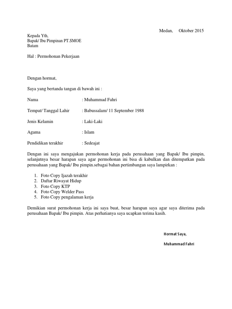 Contoh Surat Lamaran Kerja Welder - Rasmi F