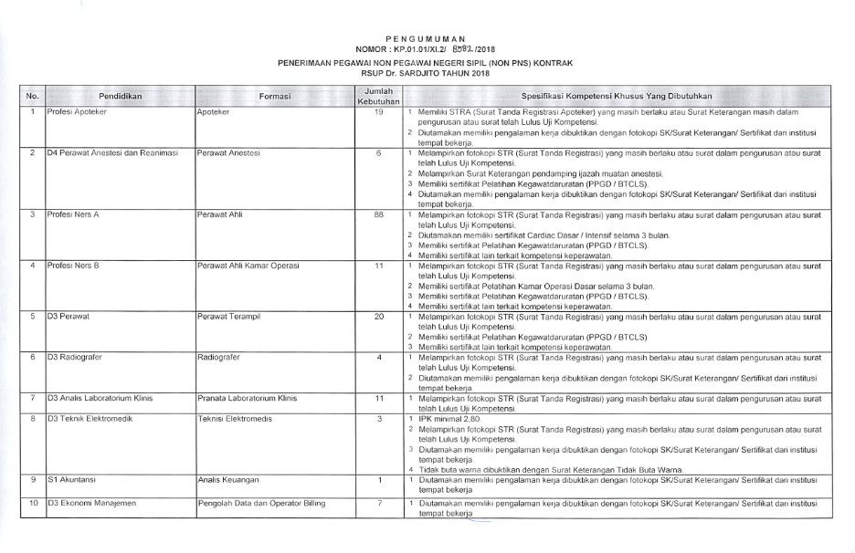 Penerimaan Pegawai Non PNS Kontrak RSUP Dr.Sardjito Tahun 2018 - Lowongan Kerja BUMN CPNS Terbaru Bulan Oktober 2020