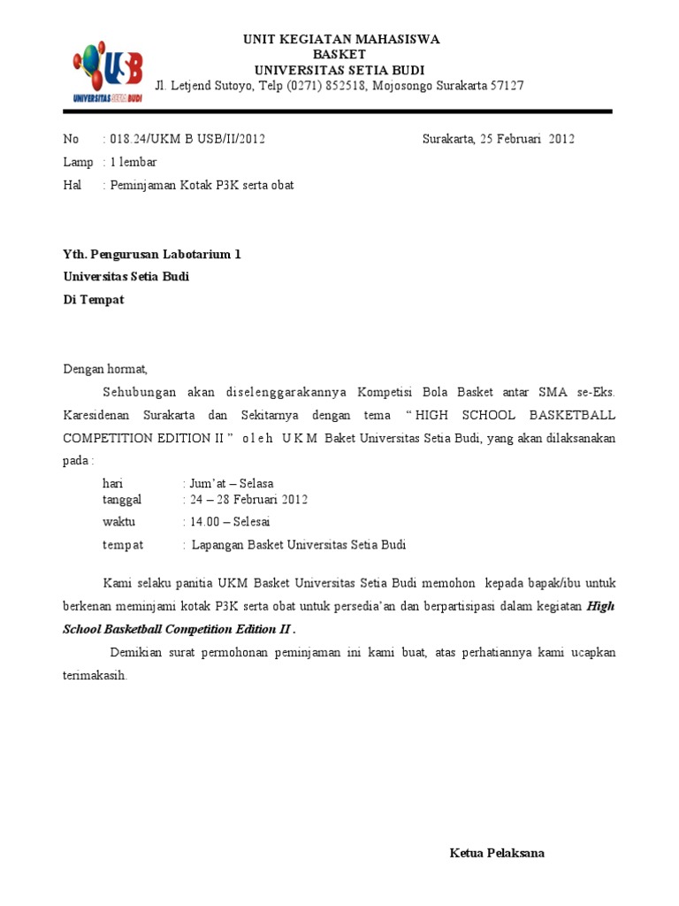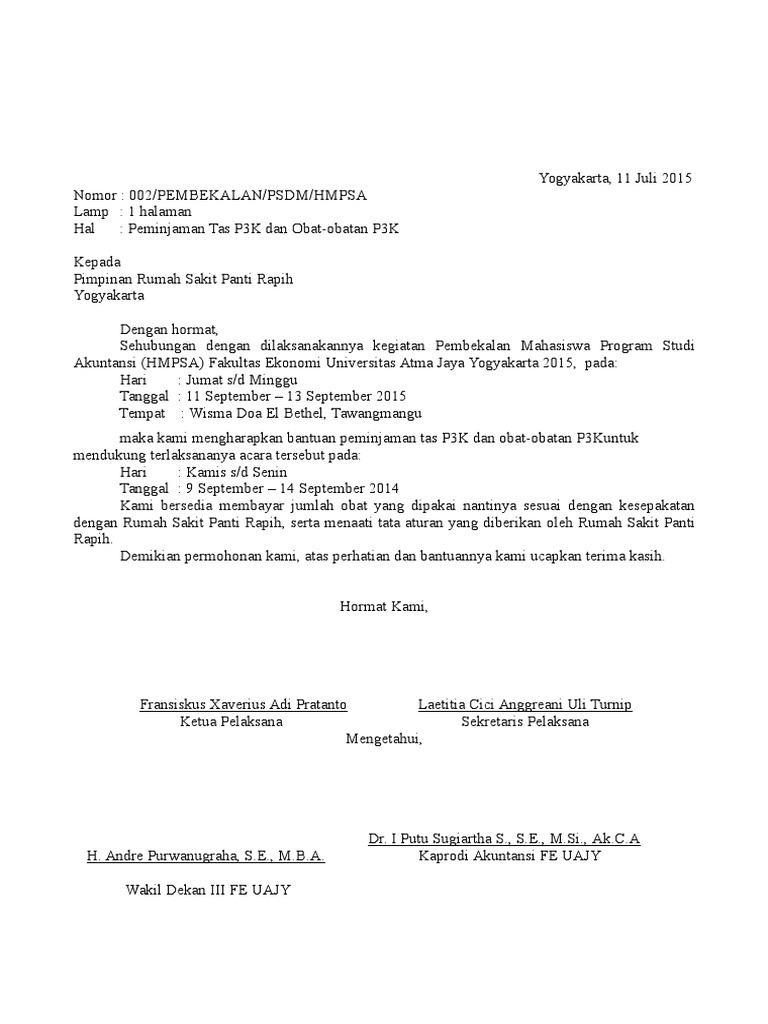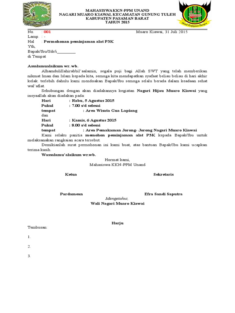Contoh Surat Peminjaman P3k