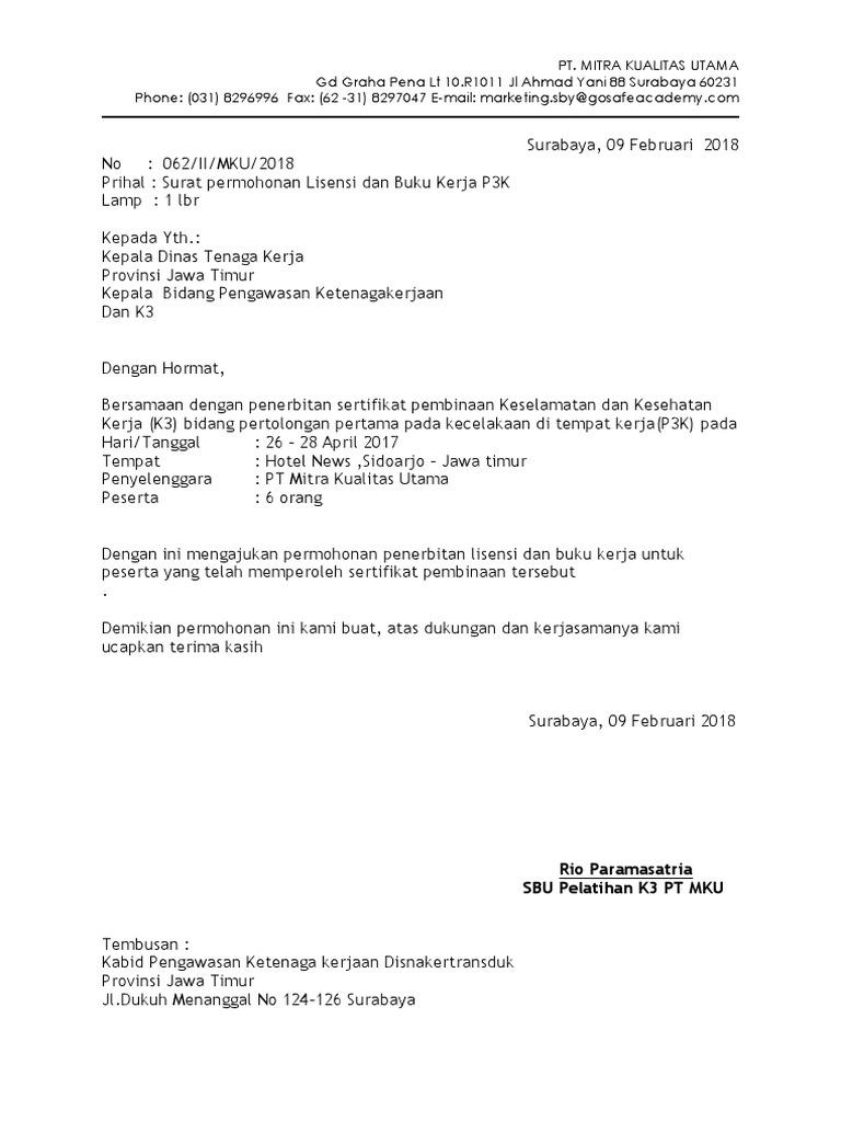 PDF) Contoh Surat Permohonan Pelatihan | Fahmy Rahman - Academia.edu