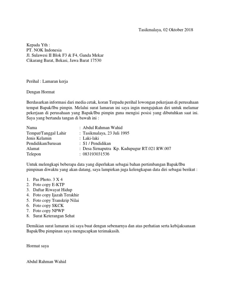 Contoh Surat Lamaran Kerja Terbaru dan Resmi | by Badrul Muhammadl | Medium